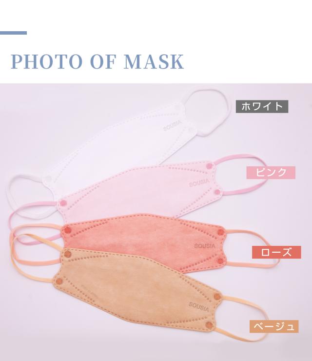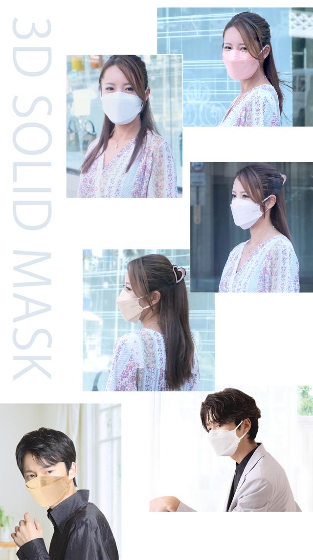 立体的な構造、ダイヤモンド空間マスク。3ピースの立体構造が口元に空間を作ることで、メイクの汚れや口紅の付着を防ぎ、快適な呼吸を実現します。