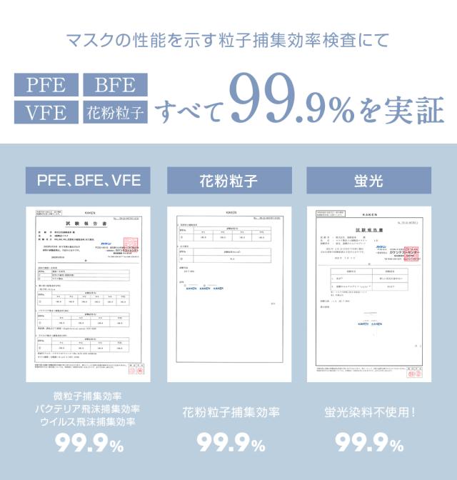 (1)BFE(バクテリア飛沫捕集(ろ過)効率)99.9%カット
