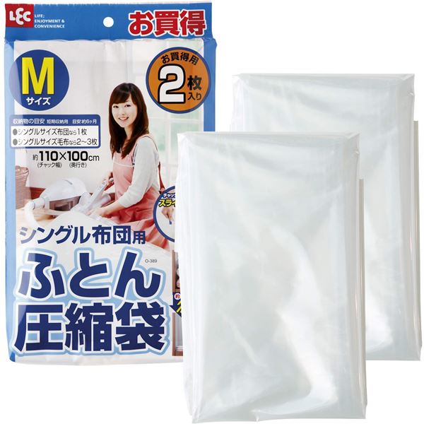 商品仕様: 【2個セット】 レック ふとん圧縮袋 M 2枚入 O-389(シングル 毛布 収納 掛けフトン 一人用 押入れ 夏布団)