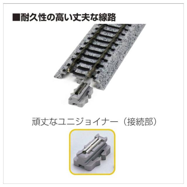 ●単線用とは異なり、都市部や新線などに多く見られる「有道床/閉床式」のプレートガーダー鉄橋をプロトタイプとして、中央部の梁や内側のディテールなどもリアルにモデル化。単品ユニトラック線路と同様のバラスト ・枕木表現を採用。線路はネジ止めにより取り付け済み。橋台部分も別パーツでリアルに再現。複線高架線路や複線トラス鉄橋、複線橋脚No.5等とも簡単に接続できる「Sジョイナー」連結方式を踏襲。 ※「Sジョイナー」は橋脚に付属しているため、鉄橋には付属していませんので、ご注意ください。