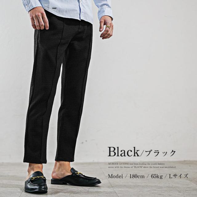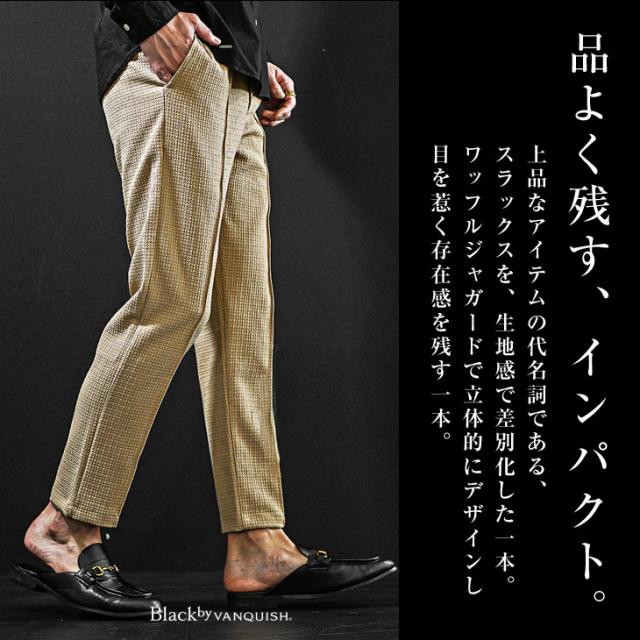 スラックス メンズ スリム テーパードパンツ メンズ スラックス メンズ 白 イージーパンツ ワッフル 生地 高級 細身 タイト きれいめ ブランド 夏 夏服 夏物 春夏 お兄系 オラオラ系 ちょいワル 春服 春 春新作 新作 Black by VANQUISH ブラックバイヴァンキッシュ
