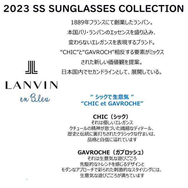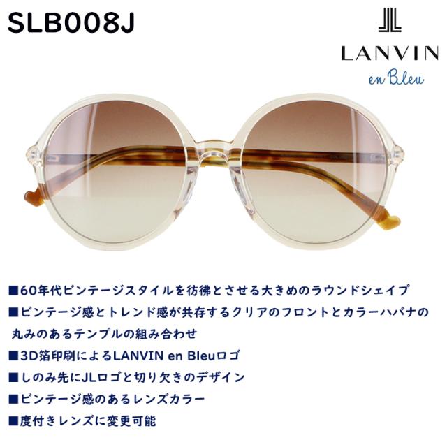 LANVIN en Bleu ランバン オン ブルー 2023年モデル サングラス SLB008J ■60年代ビンテージスタイルを彷彿とさせる大きめのラウンドシェイプのフロント ■ビンテージ感とトレンド感が共存するクリアのフロントと カラーハバナの丸みのあるテンプルの組み合わせ ■3D箔印刷によるLANVIN en Bleuロゴ ■しのみ先にJLロゴと切り欠きのデザイン ■ビンテージ感のあるレンズカラー ■度付きレンズに変更可能 日本国内正規 商品 | ||