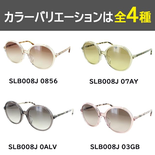 | SLB008J 0856 フレーム:シャイニークリアオレンジブラウン レンズ:オレンジブラウングラデーション SLB008J 07AY フレーム:シャイニークリアベージュ レンズ:ライトブラウングラデーション SLB008J 0ALV フレーム:シャイニークリアチャコールグレー レンズ:チャコールグレーグラデーション SLB008J 03GB フレーム:シャイニークリアローズピンク レンズ:ローズピンクグラデーション | ●素材 レンズ材質:アセテート フレーム材質:アセテート テンプル材質:アセテート ●可視光線透過率 SLB008J 0856:30% SLB008J 07AY:40% SLB008J 0ALV:20% SLB008J 03GB:30% ●紫外線透過率 1.0%以下(UVカット99%以上) |
