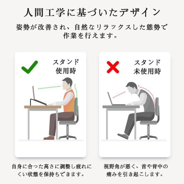 75mm?155mmの高さと傾斜角度をお好みに調整でき、姿勢の改善に役たつ、首、肩、背中などへの負担が軽減され、より快適な生活を楽しめます。