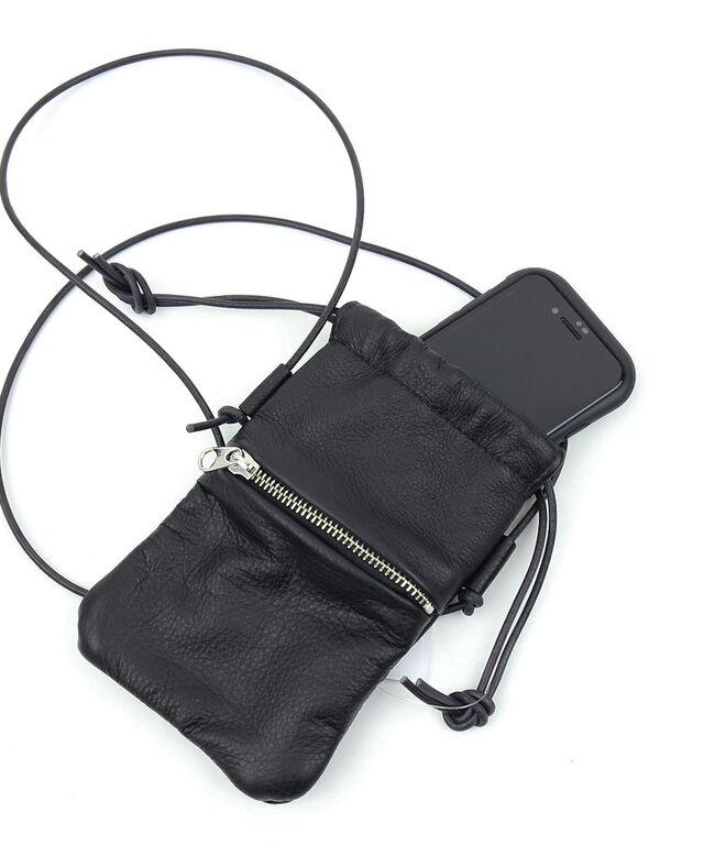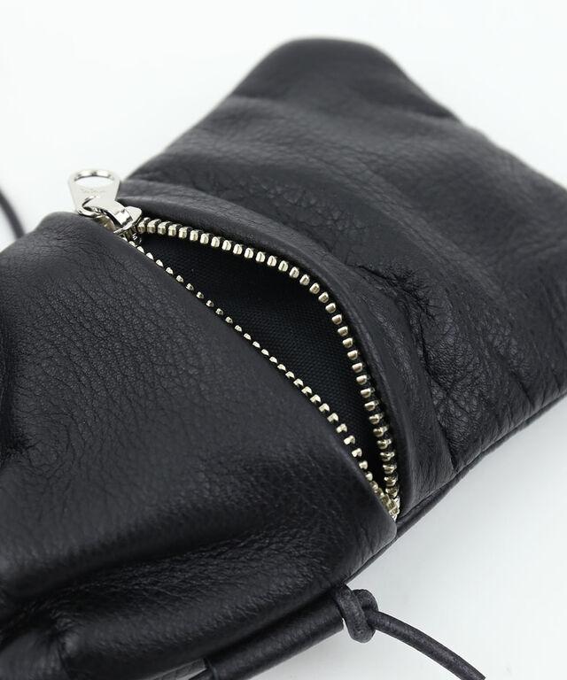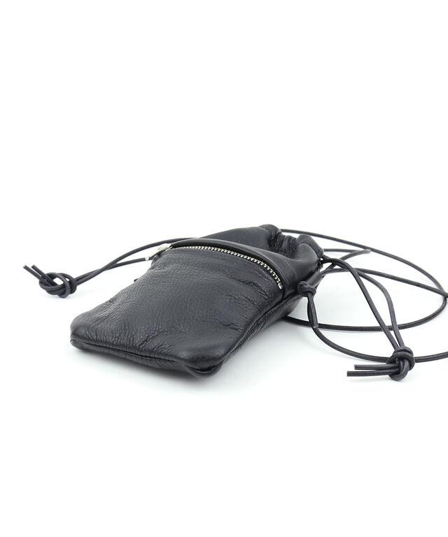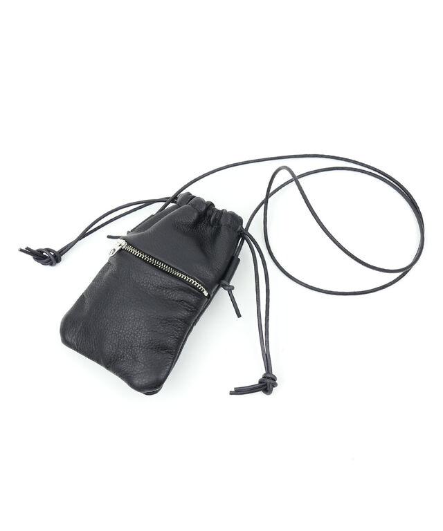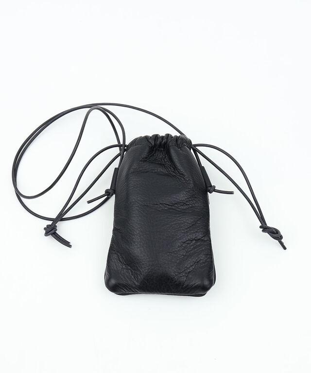 間口は巾着タイプで、ちょうどスマートフォンが入る大きさ。