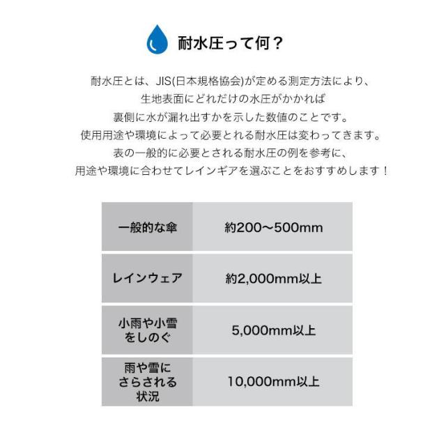 耐水圧:20,000mmH2O(長時間の激しい雨にも対応)
