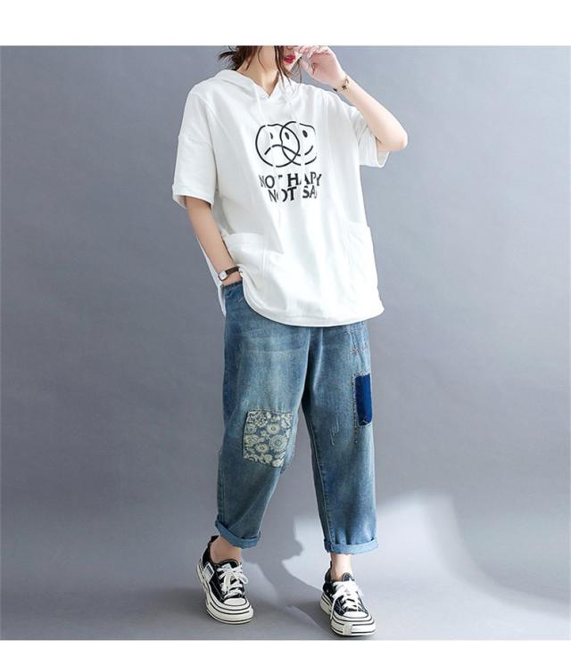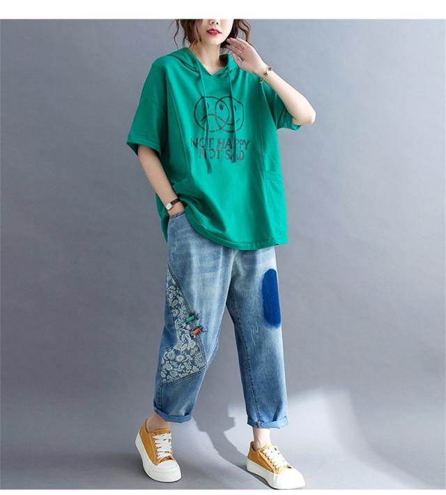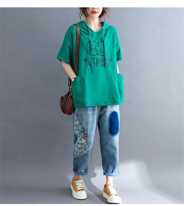 トップス 英字柄 レディース 半袖 ゆったりシルエット 五分袖 カットソー 春夏 レトロ お洒落 大人っぽいスタイル シンプルな人気コーデに お洒落