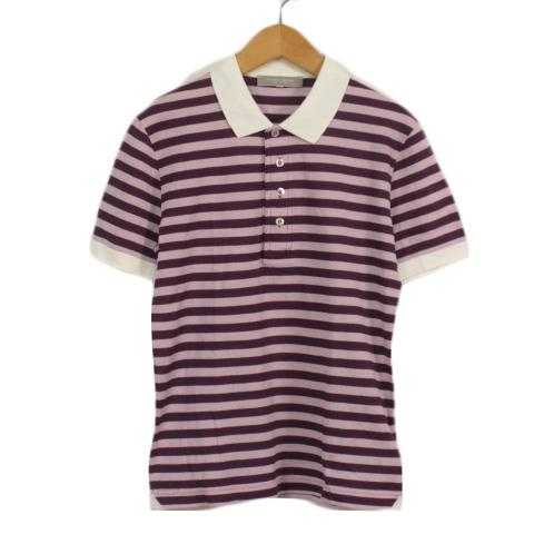 【中古】ユナイテッドアローズ UNITED ARROWS ポロシャツ ボーダー 半袖 S イタリア製 紫 パープル メンズ
