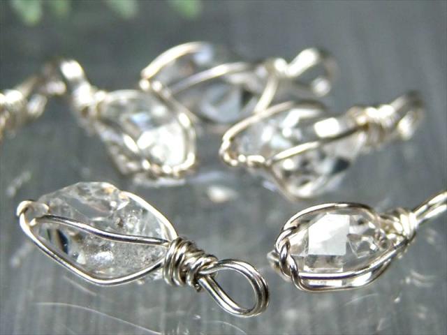 Sサイズ ハーキマーダイアモンド 結晶原石 ワイヤーラップペンダントトップ 1個売り 重さ約0.8g前後 神秘的な『夢見の石』 アメリカ ニューヨーク州 ハーキマー地区産 パワーストーン 天然石