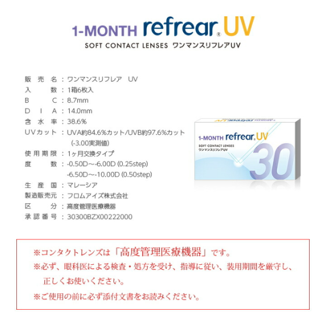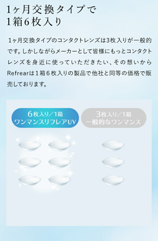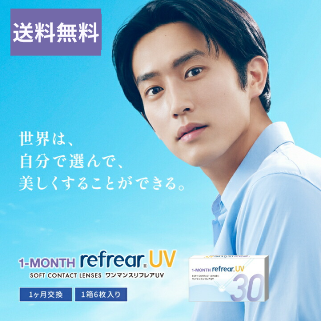 【送料無料】ワンマンス リフレア UV 1-MONTH Refrear UV 6枚入り 1箱 【1ヶ月交換】 1month マンスリー 終日装用 近視用 ポスト投函