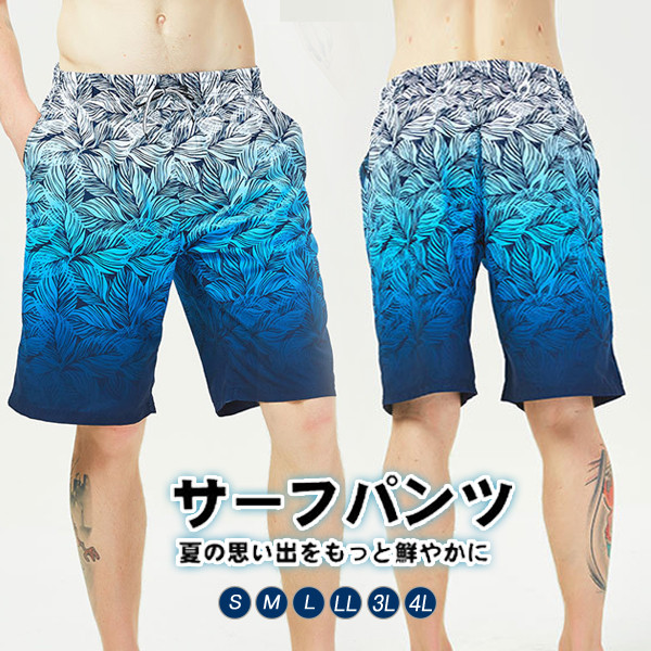 サーフパンツ メンズ ハーフパンツ スイムショーツ 水陸両用 グラデーションカラー 大きいサイズ 涼感 海水パンツ ショート 薄手 速乾 ビーチパンツ プール