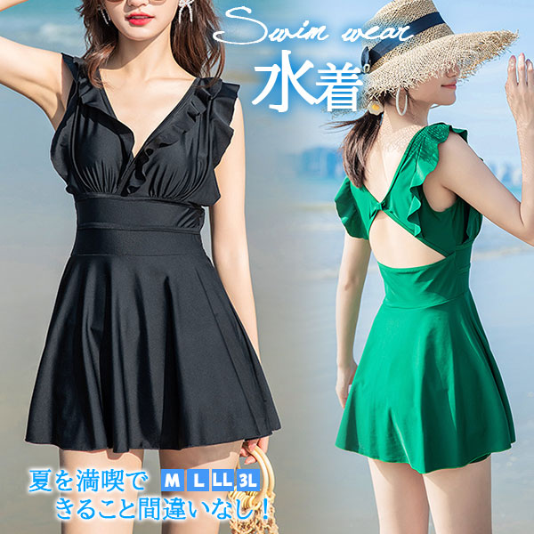 ポイント超超祭 水着 ワンピース レディース オールインワン 体型カバー 伸縮性 フレア セクシー スイムウェア オトナ女子 おしゃれ 可愛い カジュアル プール