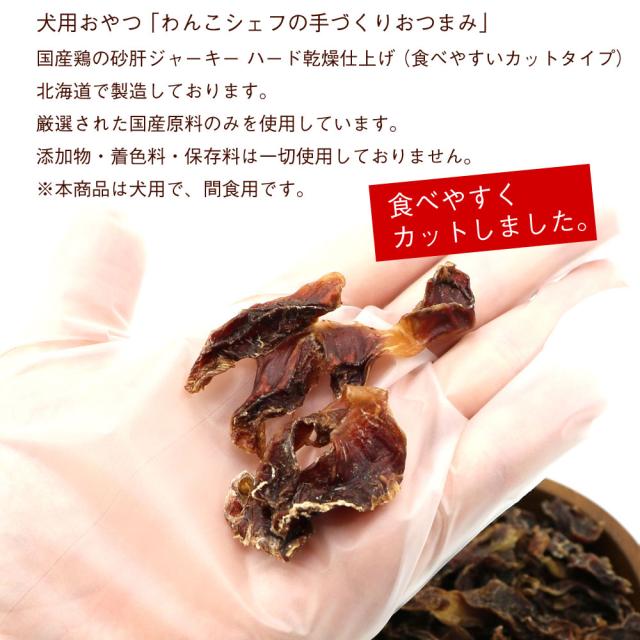 わんこシェフ 砂肝 【カット】 180g 犬のおやつ 無添加 砂肝ジャーキー ハード 【カットタイプ】 業務用 チャック袋入 北海道製造 いぬのおやつ 無添加 国産 メール便 送料無料