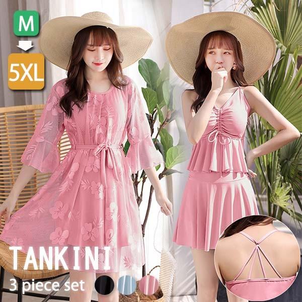 タンキニ 水着 レディース ラッシュガード 長袖 大きいサイズ キャミソール インナーパンツ アンダーフリル ハイウエスト ボーイレッグ ワイヤーなし パッド付 体型カバー セパレート 海 プール リゾート おしゃれ ぽっちゃり 韓国風 ママ水着 大人 女性用 df148x1x1zr