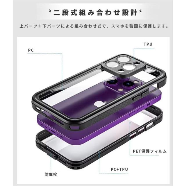 頑丈なPC+衝撃吸収TPU+PETナノフィルムで覆い落下衝撃に耐えます。更に防水ナノフィルムを使用することで驚異的な保護性能を実現。