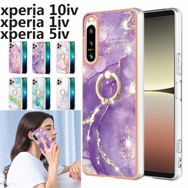 xperia 10iv ケース リング付き スマホケース xperia 5ivケース エクスペリア 5iv 10iv 1ivケース 大理石風 スマホカバー 360°回転可能 スマホ ケース xperia 10iv 5iv 1iv ケース 軽量 薄型 おしゃれ カバー 耐衝撃 エクスペリア 5 10 1 iv ケース
