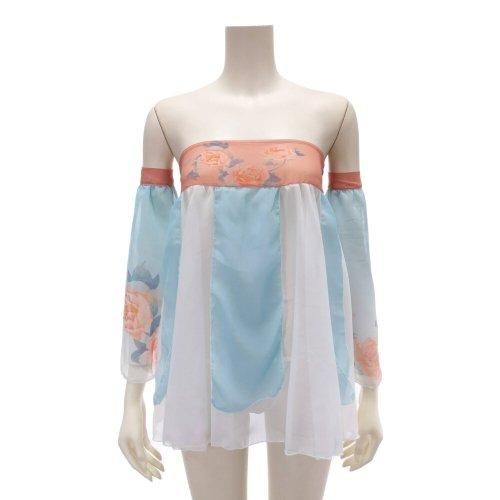【グラシア】 コスプレ 衣装 コスチューム 仮装 セクシー キュート コス 踊り子 エアリー シンプル リボン 花柄 華やか シアー ブルー×ホワイト フリーサイズ