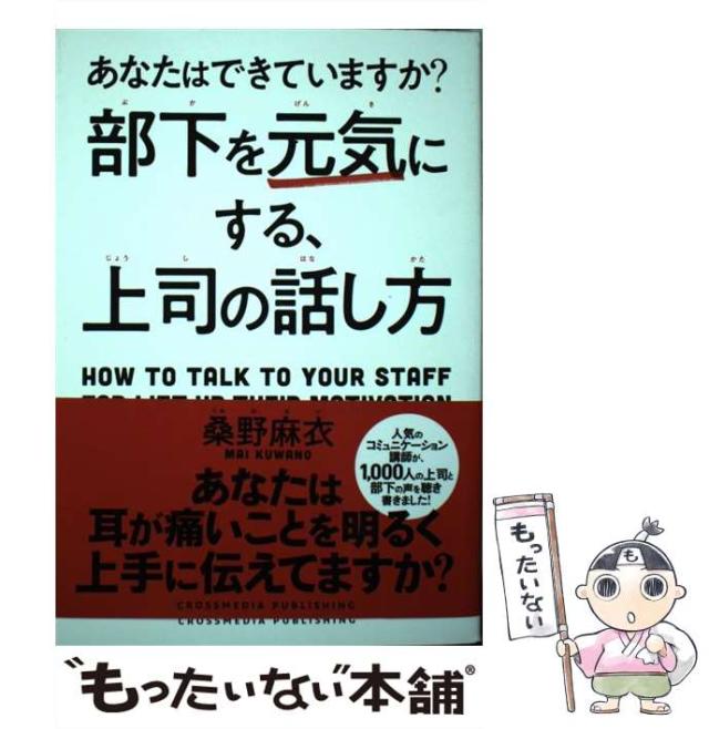 商品名:【中古】 部下を元気にする、上司の話し方 あなたはできていますか? / 桑野麻衣 / クロスメディア・パブリッシング [単行本(ソフトカバー)]【メール便送料無料】
