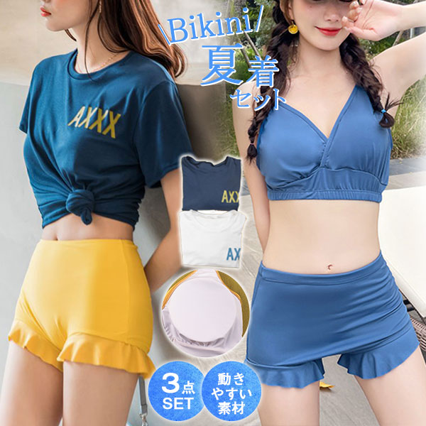 ポイント超超祭 水着 ビキニ レディース 3点セット セパレート セクシー スカート 体型カバー スイムウェア 海 ビーチ お洒落 オトナ女子 女性用 20代