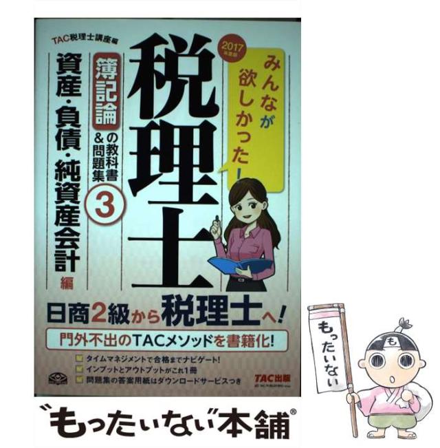 商品名:【中古】 みんなが欲しかった!税理士簿記論の教科書&問題集 2017年度版3 資産・負債・純資産会計編 / TAC株式会社(税理士講座) / TAC株式会社出 [単行本(ソフトカバー)]【メール便送料無料】