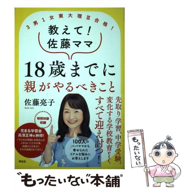 商品名:【中古】 教えて!佐藤ママ18歳までに親がやるべきこと 3男1女東大理3合格! / 佐藤亮子 / 祥伝社 [単行本]【メール便送料無料】