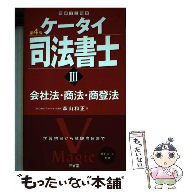 商品名:【中古】 ケータイ司法書士 3 会社法・商法・商登法 第4版 / 森山和正 / 三省堂 [単行本(ソフトカバー)]【メール便送料無料】