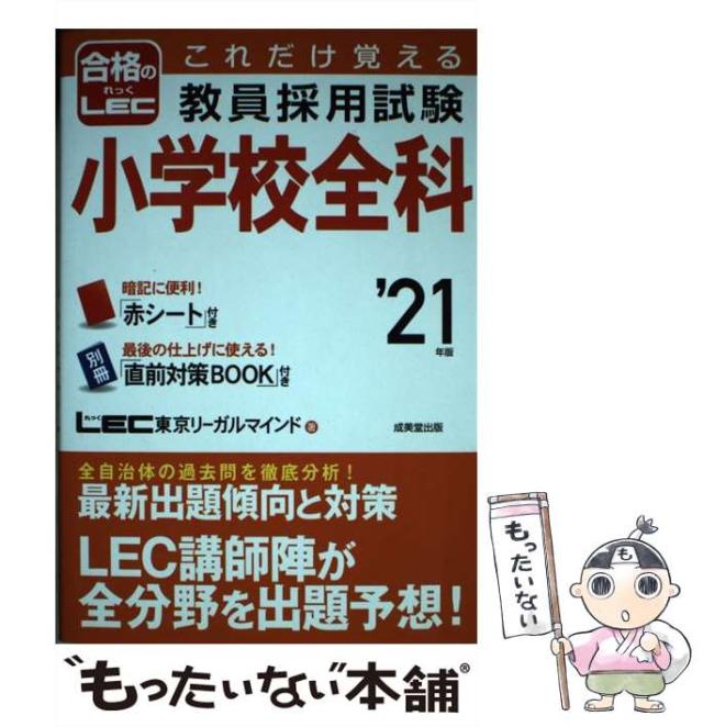 【中古】 これだけ覚える 教員採用試験小学校全科 ’21年版 / LEC東京リーガルマインド / 成美堂出版 [単行本]【メール便送料無料】