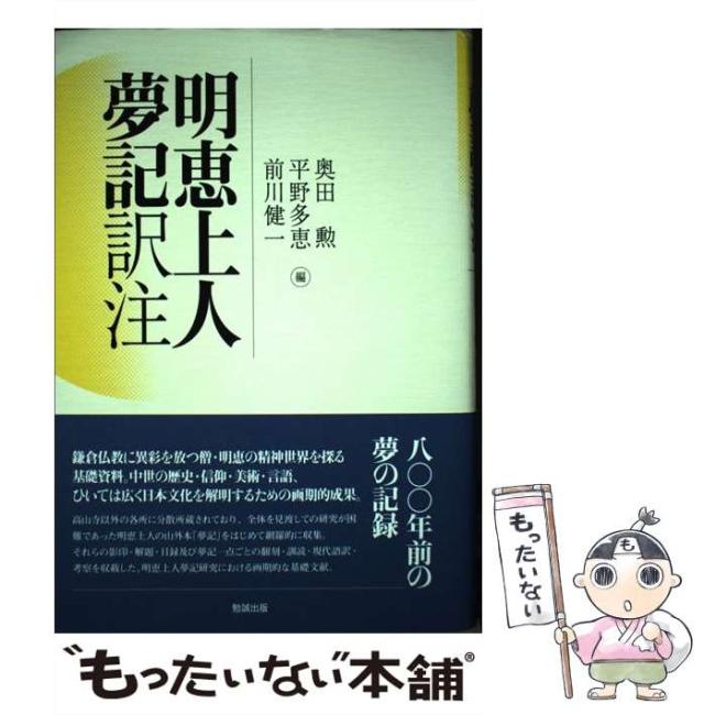 商品名:【中古】 明恵上人夢記訳注 / 奥田勲 平野多恵 前川健一 / 勉誠出版 [単行本]【メール便送料無料】
