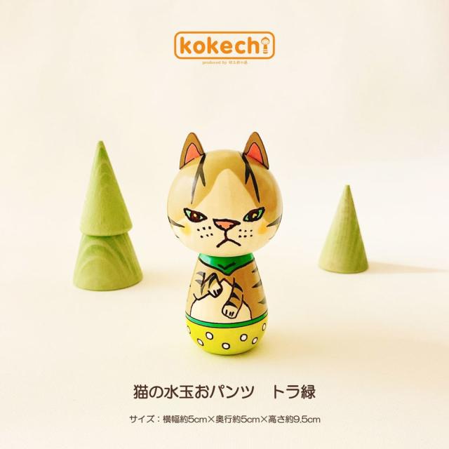 水玉の柄パンツがとってもキュート、ちょっと手招きをしている猫のこけし。お手に取っていただいた方にとっても、お気に入りのお人形になってほしい。そんな想いをこめて作ったシリーズです。