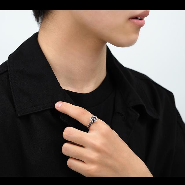 【サイズ】 薔薇の幅:9.7mm 薔薇部分のリングの厚み :5.6mm チェーン部分の幅 :3.9mm 重さ:4.7g (重さは15号を計測)