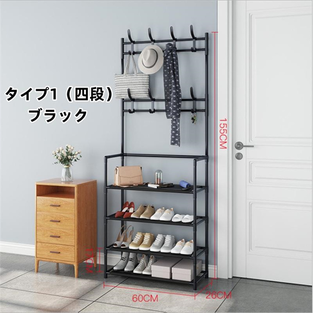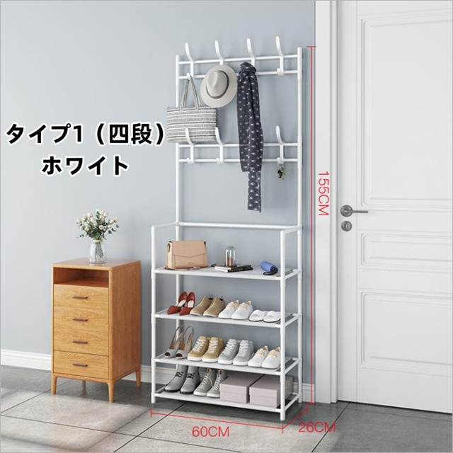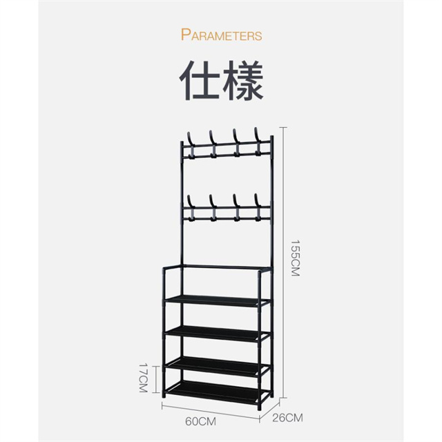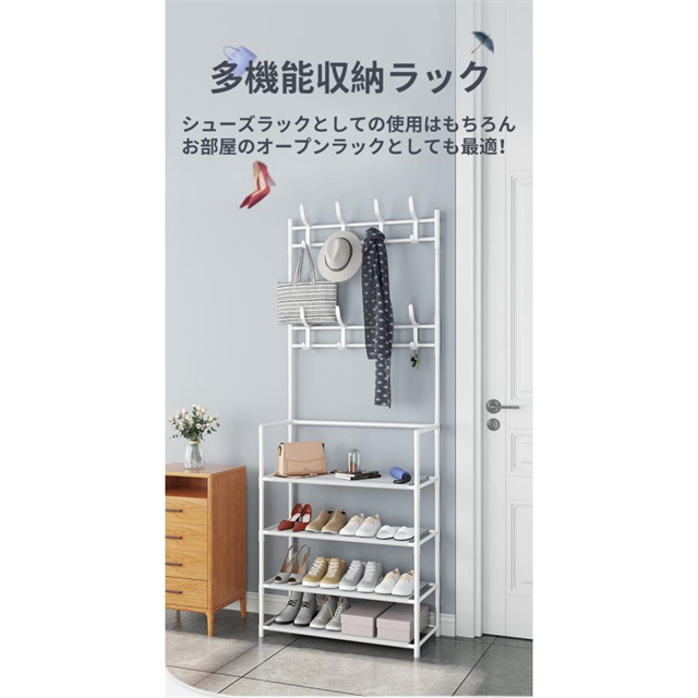 洋服掛け、帽子掛け、バッグ掛け、マフラー掛け、靴収納など様々な用途が揃えています。