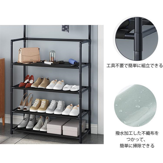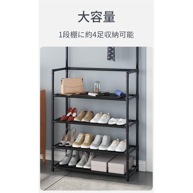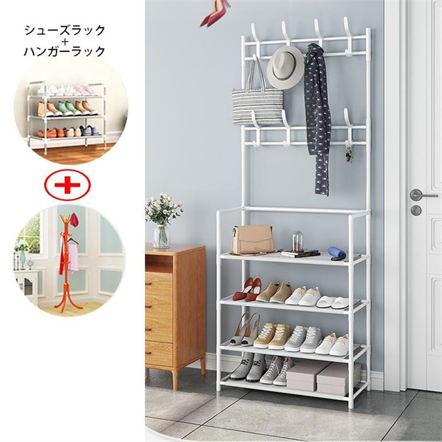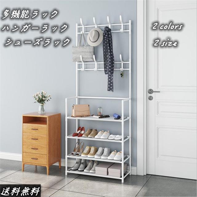 送料無料 オープンラック ハンガーラック シューズラック スリム おしゃれ 収納 便利 収納ラック 玄関収納 洋服掛け 棚付き コート掛け 省スペース 玄関 部屋