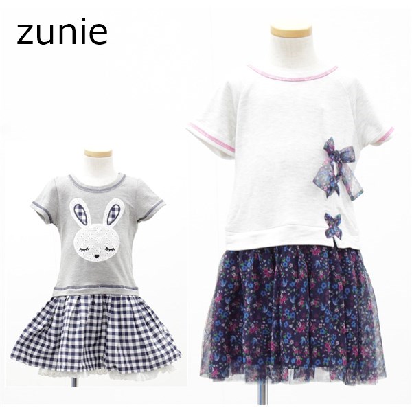 送料無料 アウトレット zunie キッズ ワンピース 半袖チュール 春夏 #592737 P616