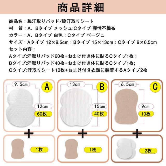 Aタイプ:汗取りパッド60枚+おまけ付き体に貼るCタイプ1枚 ;