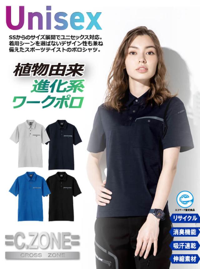 C.ZONE クロスゾーン 半袖ポロシャツ 6670 作業着 作業服 春夏 エコ素材 ユニセックス XEBEC ジーベック サイズSS〜3L