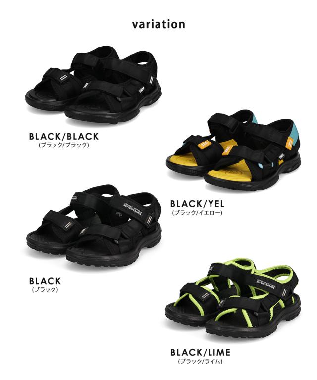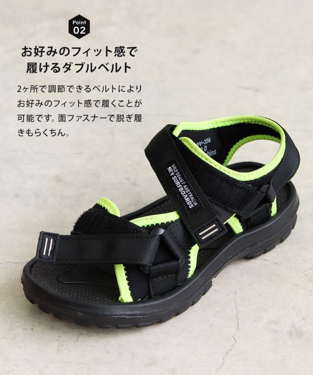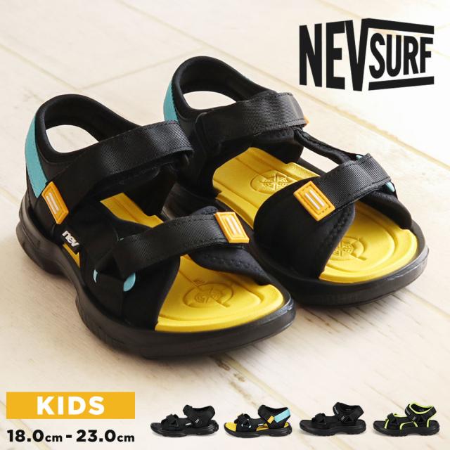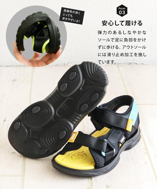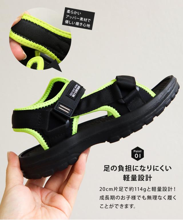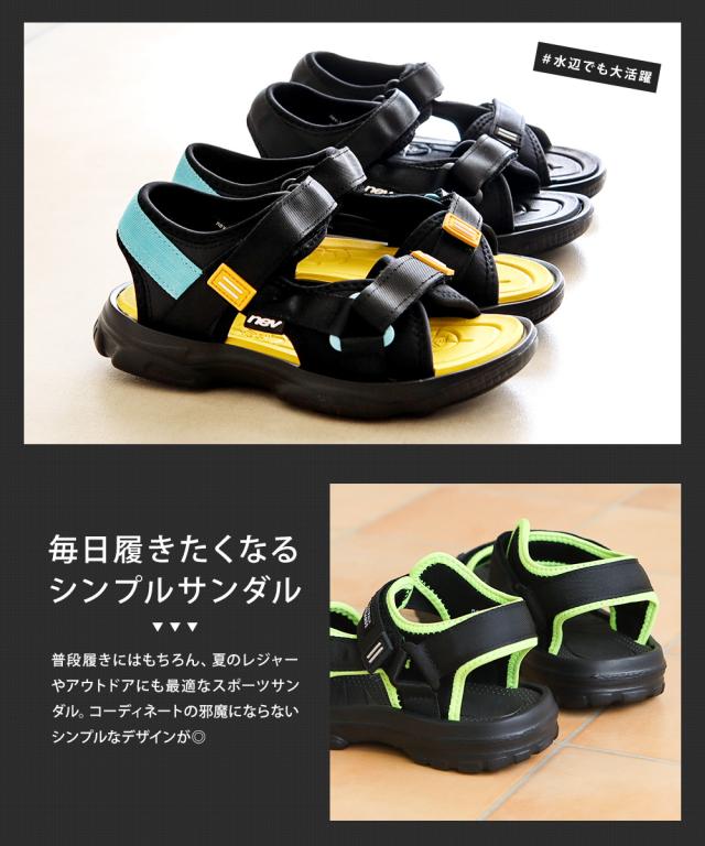 サンダル キッズ 男の子 スポーツサンダル 軽量 子供靴 ストラップサンダル 水陸両用 履きやすい 面ファスナー 歩きやすい 軽い 脱げにくい 女の子 小学生 ジュニア 靴 シューズ 春 夏 プール 海 川 アウトドア レジャー 黒 ブラック イエロー nev ネブ 389