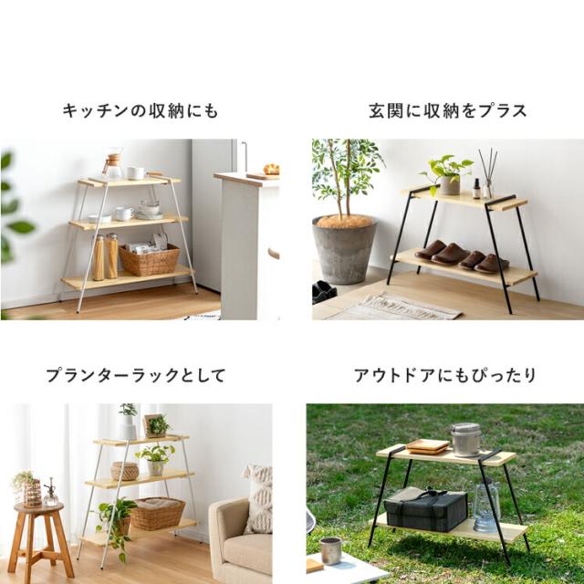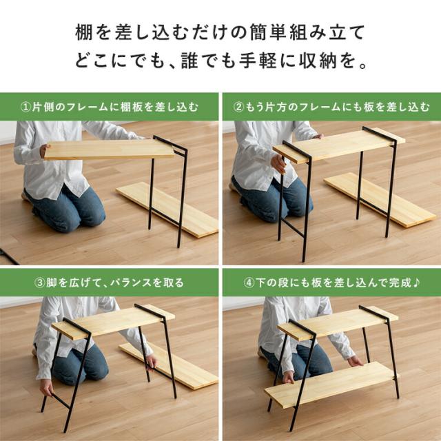 収納 ラック オープンラック 2段 木製 北欧 簡単 アウトドア おしゃれ かわいい ナチュラル 物置 小物 雑貨 物置 シンプル 隙間 アイアン パイン 天然木 新生活