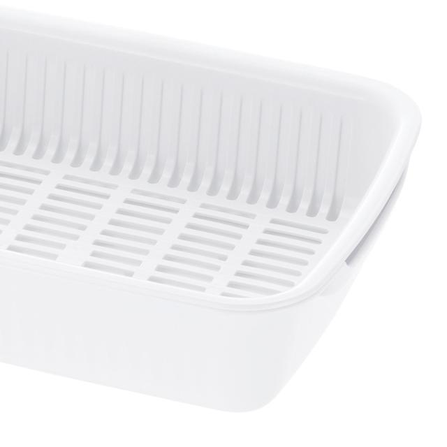 1人暮らしの方や少人数の食器、食洗機に入れられない食器の水切りにちょうど良いサイズの水切りバットです。お料理の下ごしらえの時には野菜の水切りとしても活躍します。