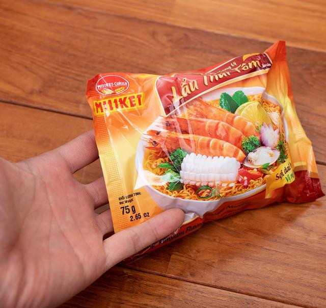 スパイシーで旨味ある、トムヤムエビ風味のベトナムのインスタントヌードルです。ミリケットはエビのイラストとクラフト紙のパッケージで有名な1970年前半からインスタント麺を製造販売しているベトナムの老舗インスタント麺メーカーです。■お召し上がり方