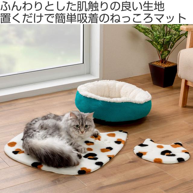 ペットマット おくだけ吸着ねっころマット 猫 犬 洗える サンコー 日本製 ( ペット マット ふんわり ズレない 滑り止め おくだけ吸着 洗濯OK 消臭 猫顔 座ぶとん 置くだけ 吸着 床暖房対応 滑りにくい フェイス ペット用 かわいい )