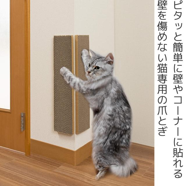 爪とぎ 吸着コーナーにも貼れる猫のつめとぎ 猫 段ボール 壁 日本製 ( ねこ ダンボール 猫用品 つめとぎ 貼って剥がせる 簡単吸着 壁用 2枚組 爪研ぎ ガリガリ 猫用 爪磨き 爪みがき ペット用品 賃貸向け 壁紙傷つけない )