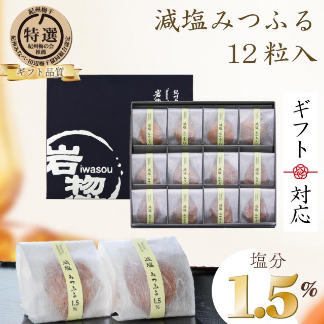 | 特選 紀州南高梅 岩惣の梅 減塩みつふる 塩分1.5% (12粒入) | |