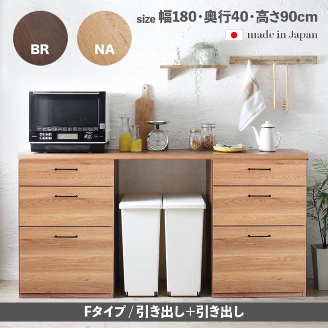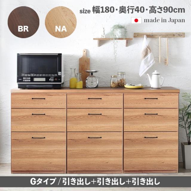 CLT キッチンカウンター 180cm幅 Gタイプ・引き出し+引き出し+引き出し オーク ナチュラル・ウォールナット ブラウン 生産国 国産 日本製 ワイド ユニットキッチン収納 完成品