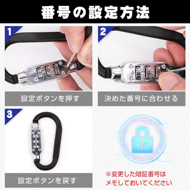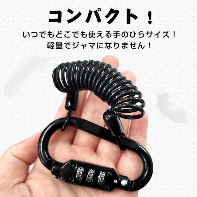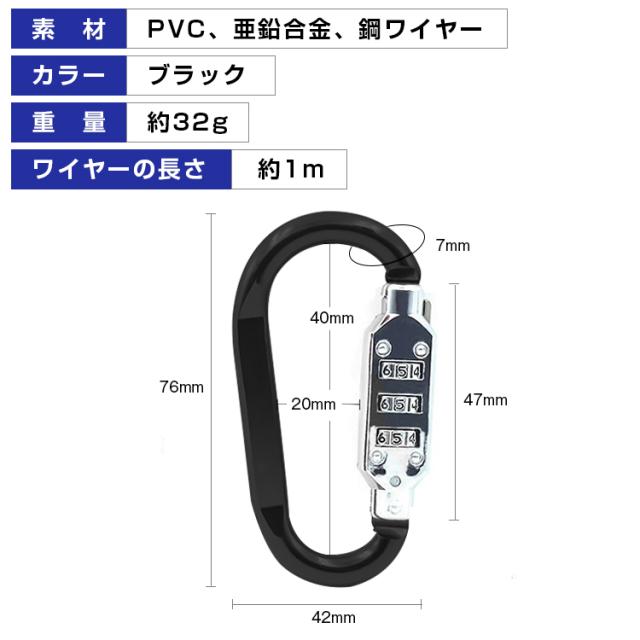ワイヤーロック 盗難防止 カラビナロック 暗証番号3桁 ダイヤルロック ワイヤーロック 軽量 伸びる 1m 万能ロック sg025