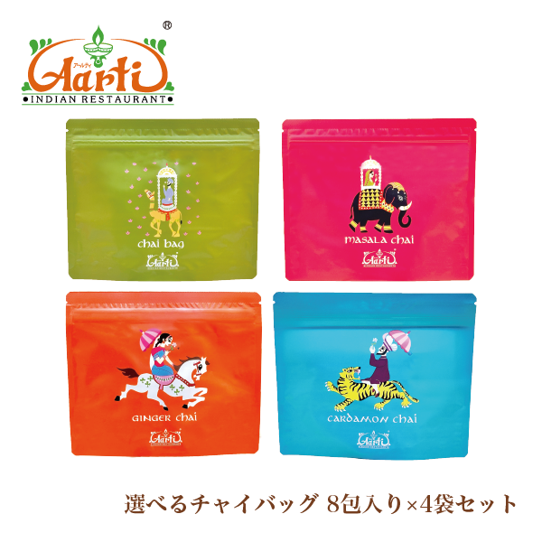 チャイティーバッグ 8包入り×各4種類セット (4品) 【パケット便送料無料】オリジナルチャイバッグ