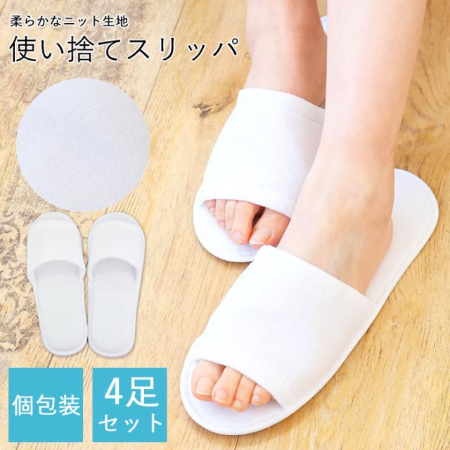 使い捨てスリッパ 4足セット スリッパ 使い捨て ふっくら 薄型 ホワイト 白 携帯スリッパ 【メール便送料無料】個包装 携帯用 アメニティ 前空き フリーサイズ 入学式 卒業式 幼稚園 参観日 上履き 旅行 飛行機 文化祭 お遊戯会 発表会 お受験 屋内用 agesugi_snk