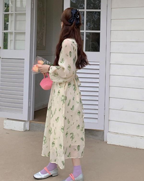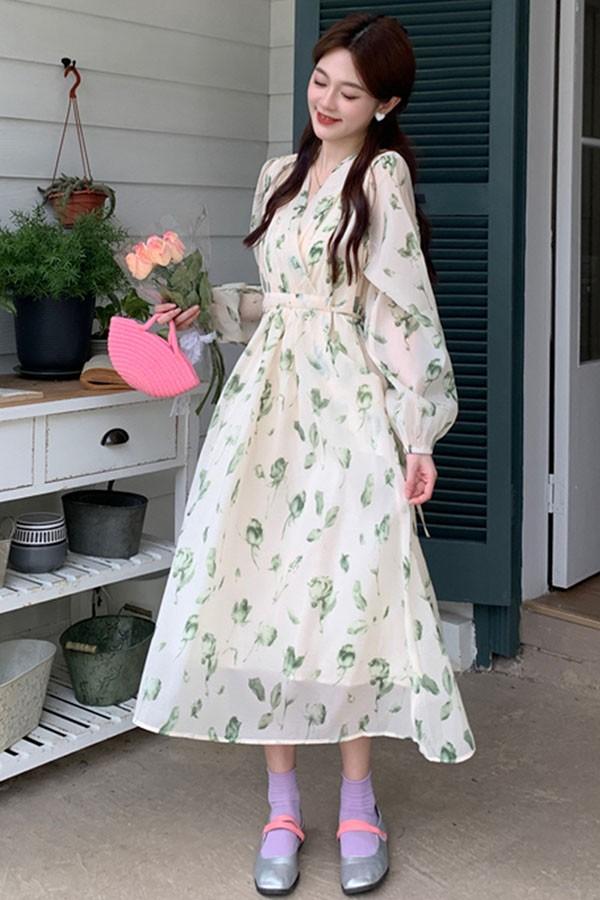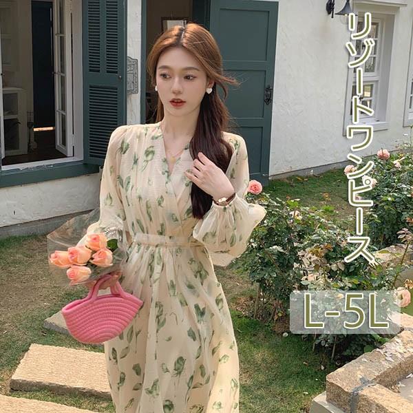 リゾートワンピース レディース サマードレス 大きいサイズ ロング マキシ丈ワンピース 長袖 シフォン 透け Aライン ハワイ 沖縄 旅行用 大人 20代 30代 40代 可愛い お洒落 花柄 ふんわり フェミニン 薄手 リゾートファッション bi073zezec0