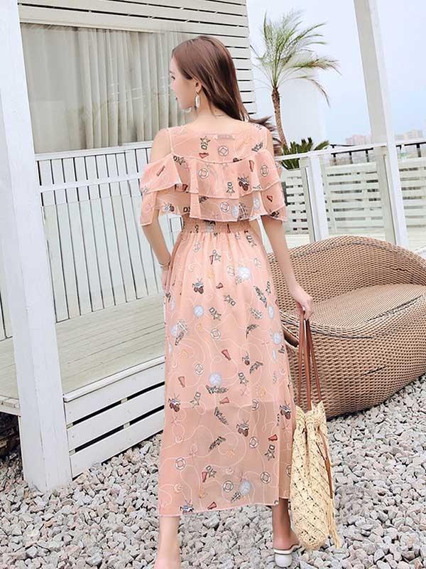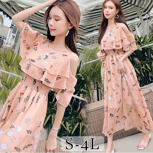 リゾートワンピース レディース サマードレス 大きいサイズ ロング 肩だし マキシ丈ワンピース 半袖 シフォン 透け Aライン 水着の上に着る服 ハワイ 沖縄 旅行用 大人 20代 30代 40代 可愛い お洒落 花柄 ふんわり フェミニン 薄手 リゾートファッション bi066zezezr