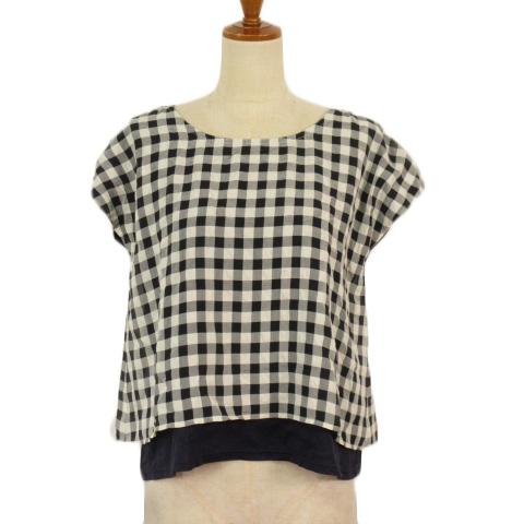 【中古】ニューヨーカー NEWYORKER カットソー ブラウス チェック フレンチスリーブ M 黒 ブラック レディース