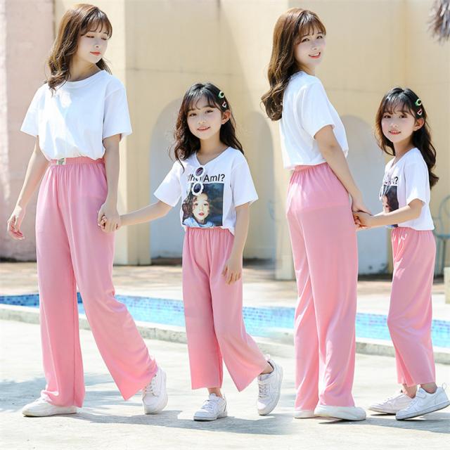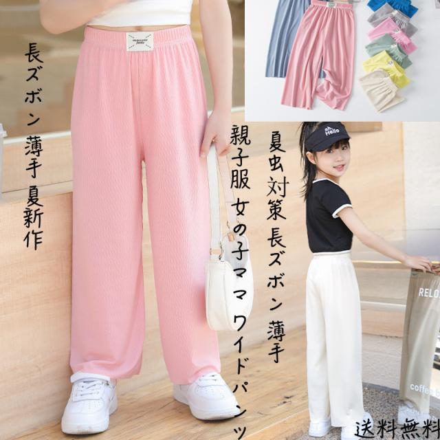 キッズ 女の子 接触冷感 パンツ 夏 ワイドパンツ 親子服 ママ 女の子 セルフカット ズボン ゆったり 夏虫対策 長ズボン 薄手 夏新作